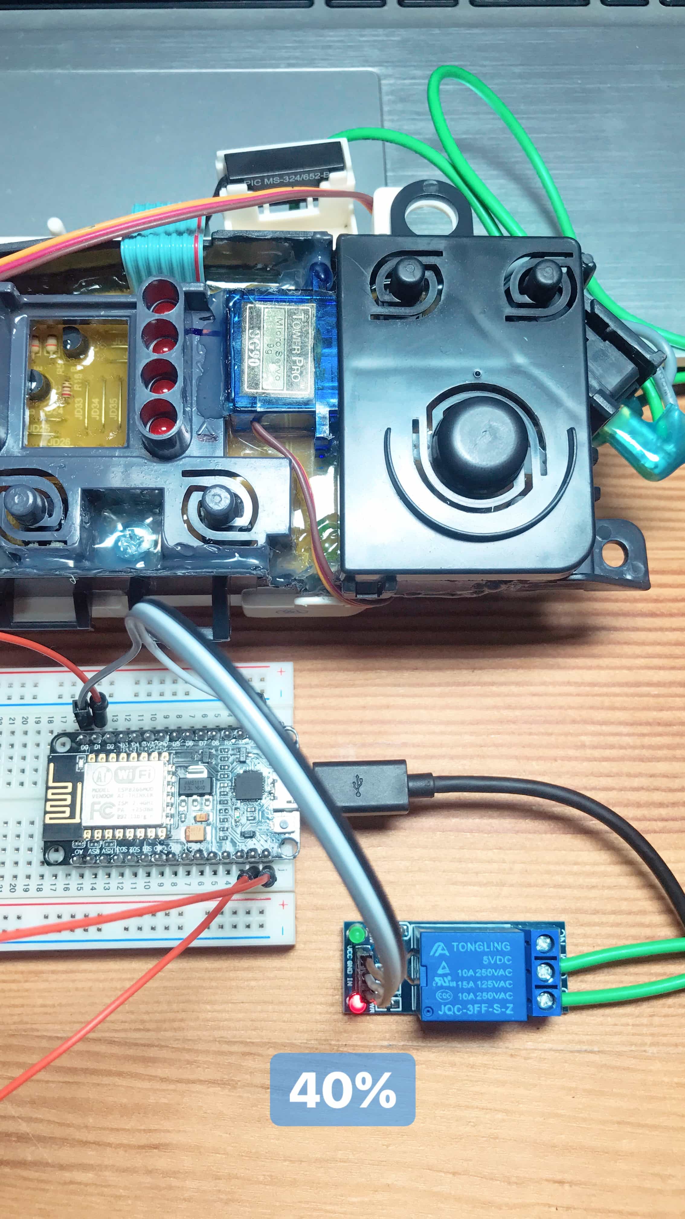 開發板則採⽤ NodeMCU 來連接網路,照⽚摘自 IG 限動,下⽅標有預估完成進度百分比,供參考。