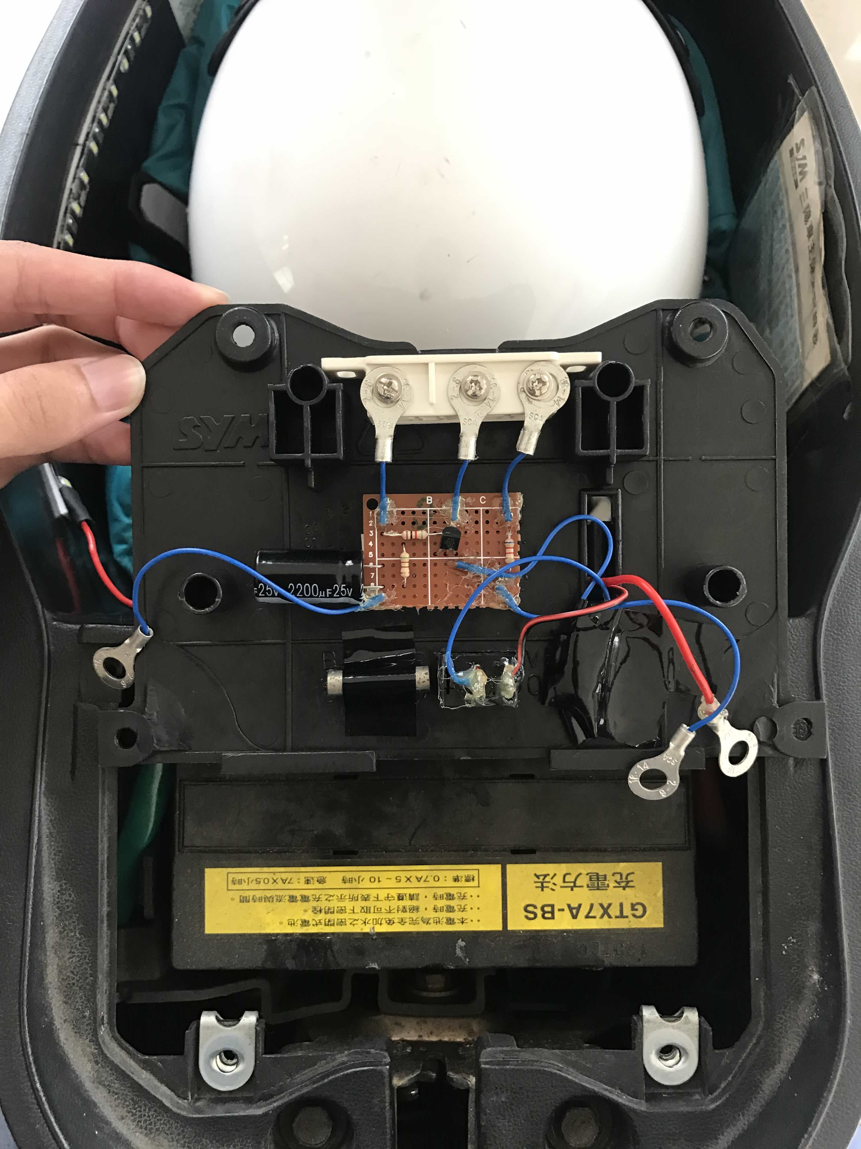 為了達到⾃動照明的效果,我安裝了磁簧開關,並於坐墊下方的相對位置上也安裝了磁鐵。
